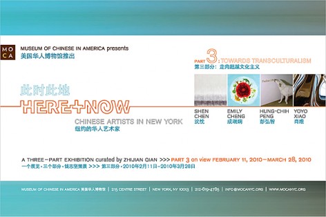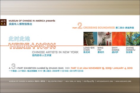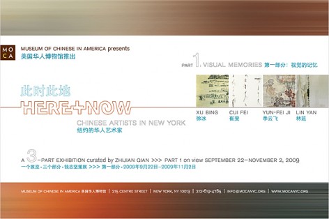 Here+Now: Chinese Artists in New York exhibition catalogue design, editing, and production, three e-cards, and exhibition graphics.